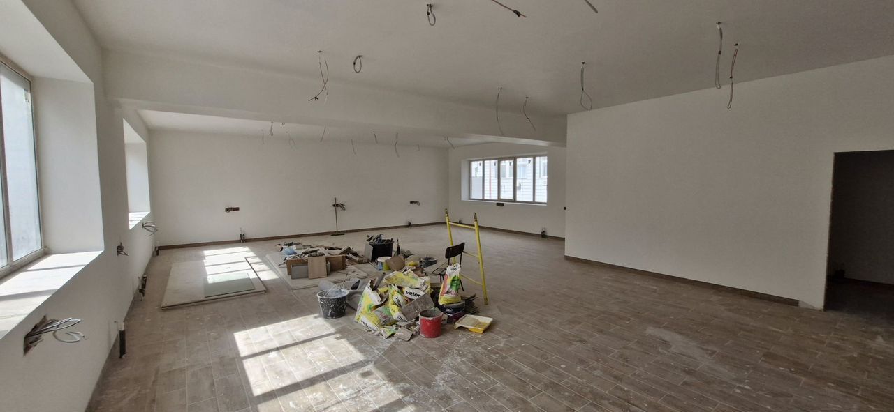 S-340 кв.м. представляет собой: Два этажа, первый этаж состоит из двух изолированных комнат, комната отдыха для сотрудников (соffее роint), два с/у для сотрудников , один с/у гостевой, так же на первый этаж есть возможность заезда автомобиля, второй этаж представляет собой открытую планировку и изолированного кабинета для руководителей. Заканчивается ремонт в помещение.