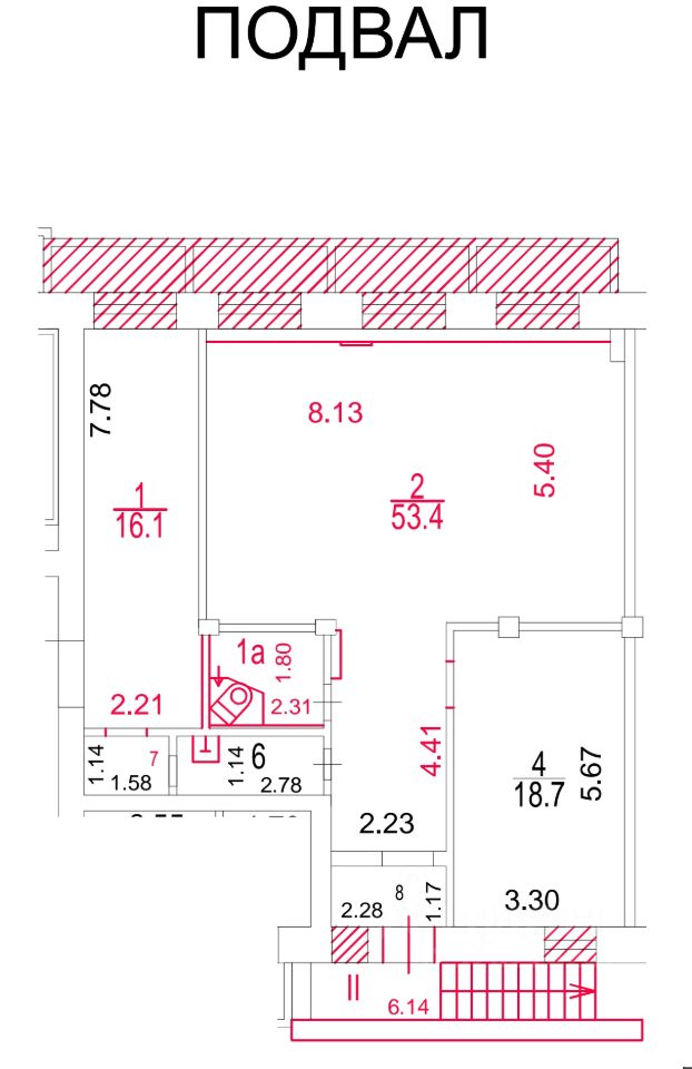 Полуподвальное помещение 102,6 метра.
