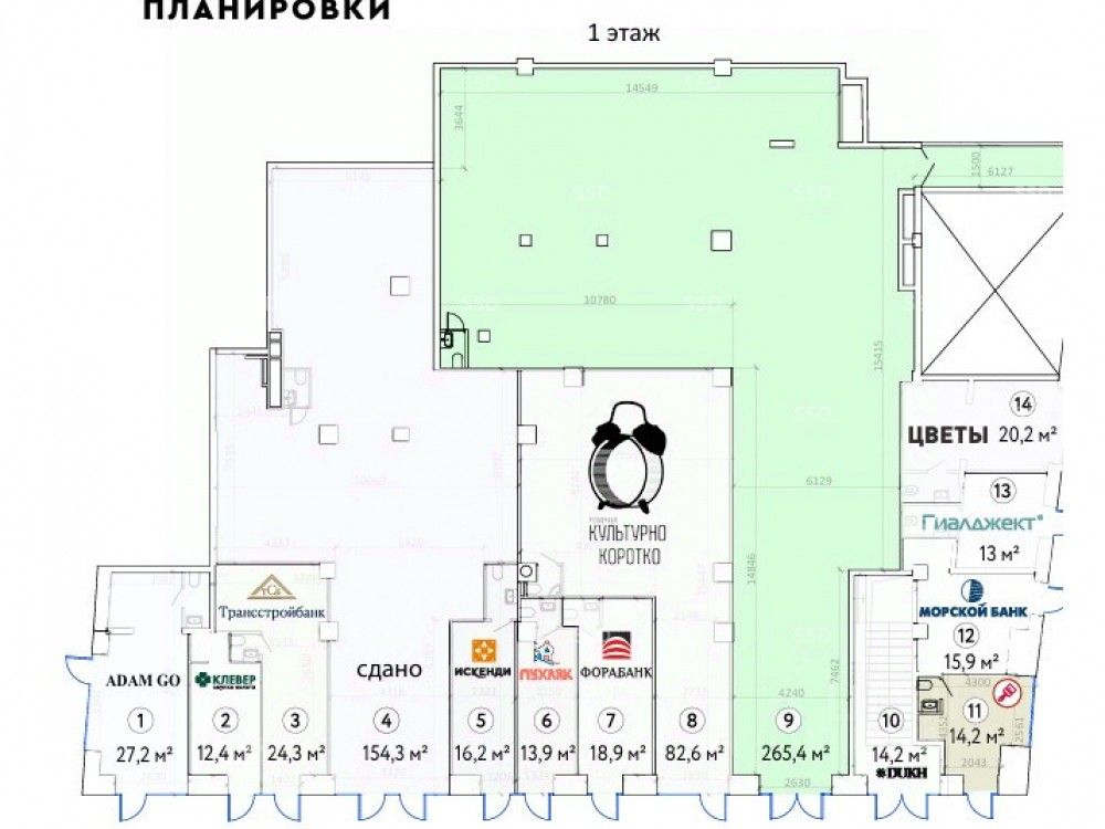 Назначение помещения: Шоурум, клиентский офис, салон красоты, ресторан/кафе, магазин, аптека