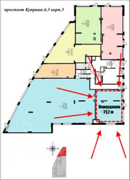 Сдаётся в аренду коммерческое помещение свободного назначения площадью 71.2 м² на первом этаже современного жилого комплекса центр Скандинавия в Новой Москве.