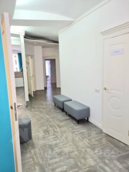 Планировка позволяет сделать от 7-8 больших кабинетов с окнами. Ресепшен с зоной ожидания, гардеробная для посетителей, гардеробная для персонала, комната для отдыха персонала (кухня), три сан. узла, помещение для хранения и утилизации биоматериала.