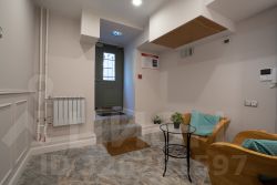 Рабочий кабинет 16 кв м. В кабинете две мокрые точки, большое окно, вентиляция, кондиционер, пожарная сигнализация и видеодомофон (входную дверь можно открывать из кабинета). Кроме кабинета в арендную плату включено пользование входной зоной (9 кв м), кухней (6 кв м), зоной отдыха (12 кв м) и двумя санузлами совместно с тремя другими арендаторами.