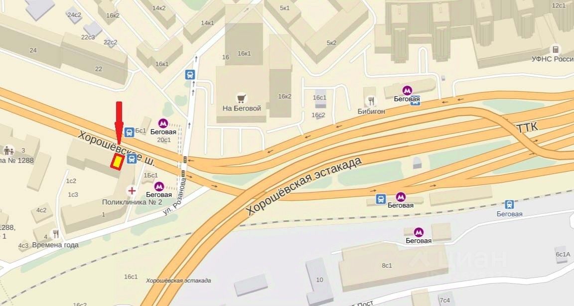 Сдаётся помещение в 30 метрах от входа станции метро Беговая и в 1 метре от остановки городского транспорта. Помещение имеет отдельный вход с улицы, большие витринные окна, санузел. Электрическая мощность до 40 кВт.
