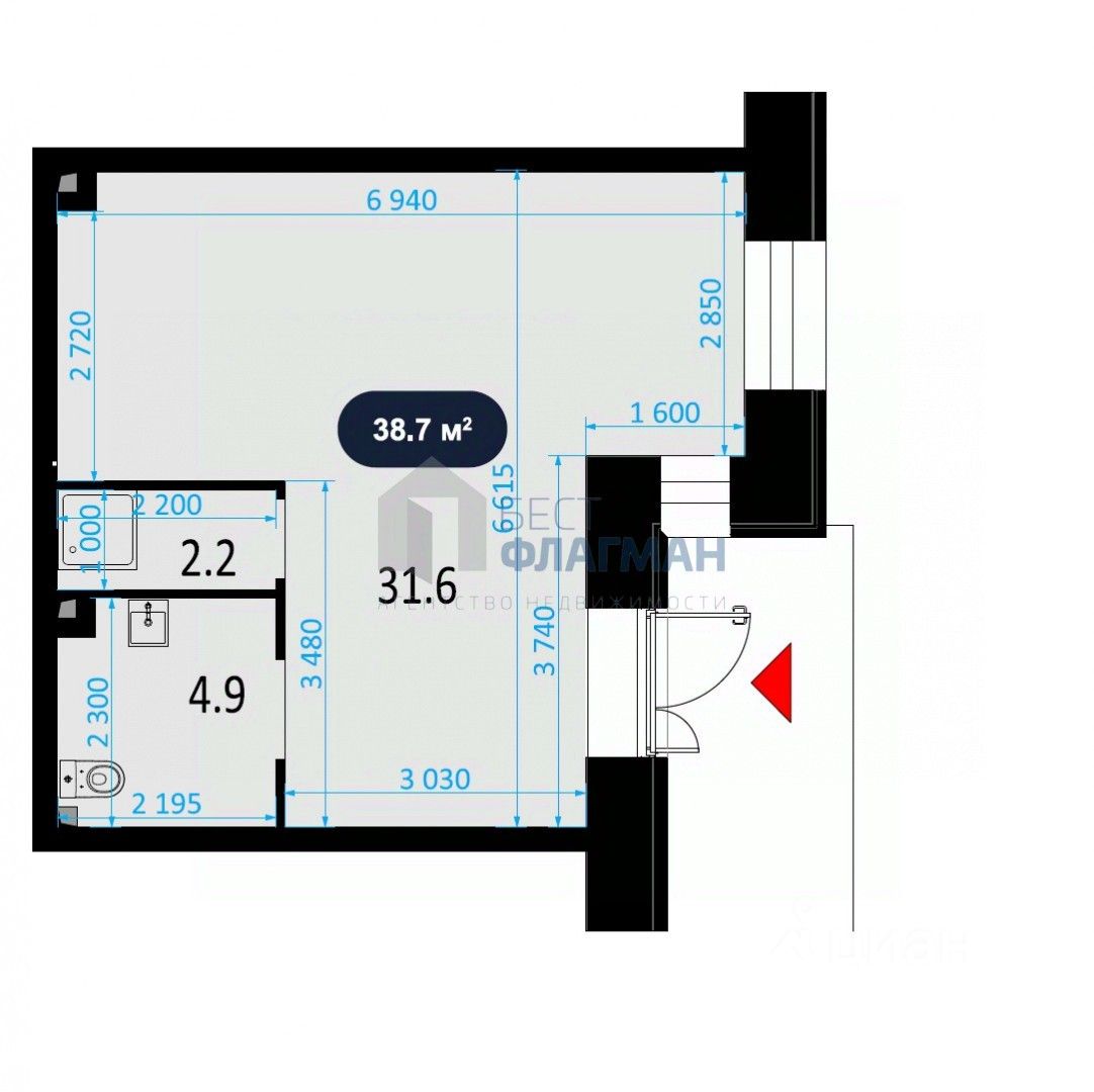 Площадь: 38,7 м²