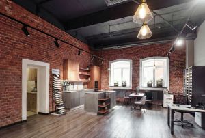 Современный офис в уникальном лофт-квартале "Товарищество Рябовской Мануфактуры", расположенном в историческом здании бывшей текстильной фабрики.