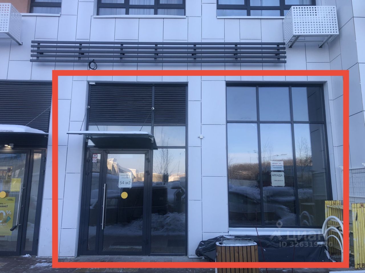 - Есть конструкция на фасаде для установки вывески рекламы, электрический вывод для подключения вывески есть.