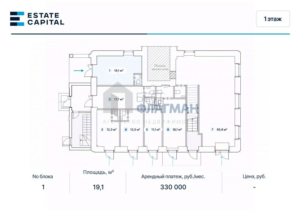 Аренда помещения свободного назначения 19,1 кв.м.