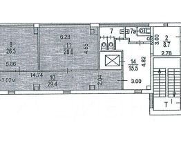 Описание помещения: Комфортабельный офис, состоящий из трех светлых комнат и коридора. В каждой из рабочих комнат установлен кондиционер. Санузел расположен на этаже и является общим.