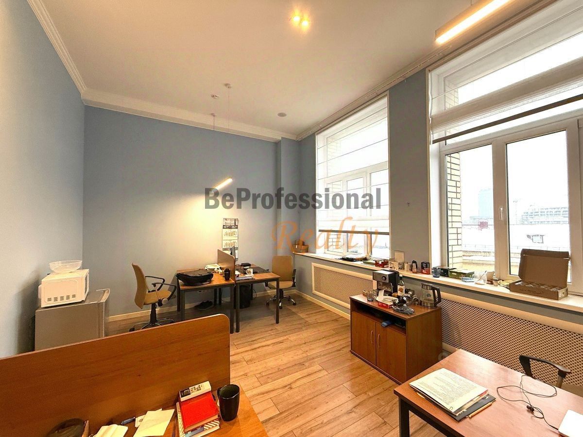 Предлагаемый офисный блок расположен на 7-м этаже и включает в себя кабинет + переговорную комнату и небольшой коридор (гардеробную зону). Выполнена качественная отделка, офис предлагается в аренду с мебелью как на фотографиях, можно добавить свою. Помещение оборудовано системой вентиляции и кондиционирования. Высокие потолки (более 3-х метров) и современные светильники придают помещению дополнительный объем и освещение.