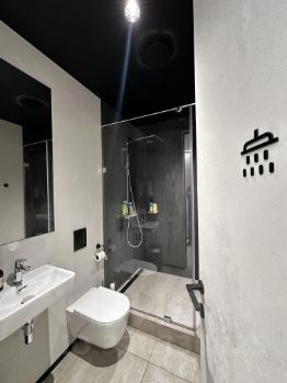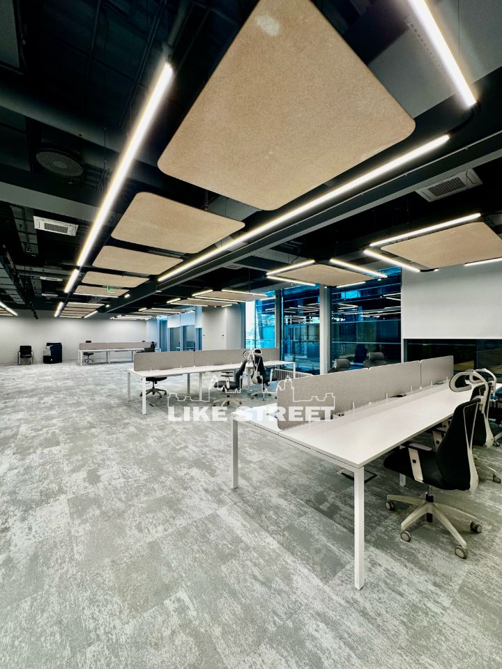 Планировка: open space, 3 изолированных кабинета, переговорная, кухня, гардеробная при входе, санузлы, душевая.