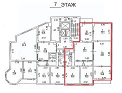 Кабинетная планировка: шесть кабинетов, рецепшен, кухня и два сан.узла