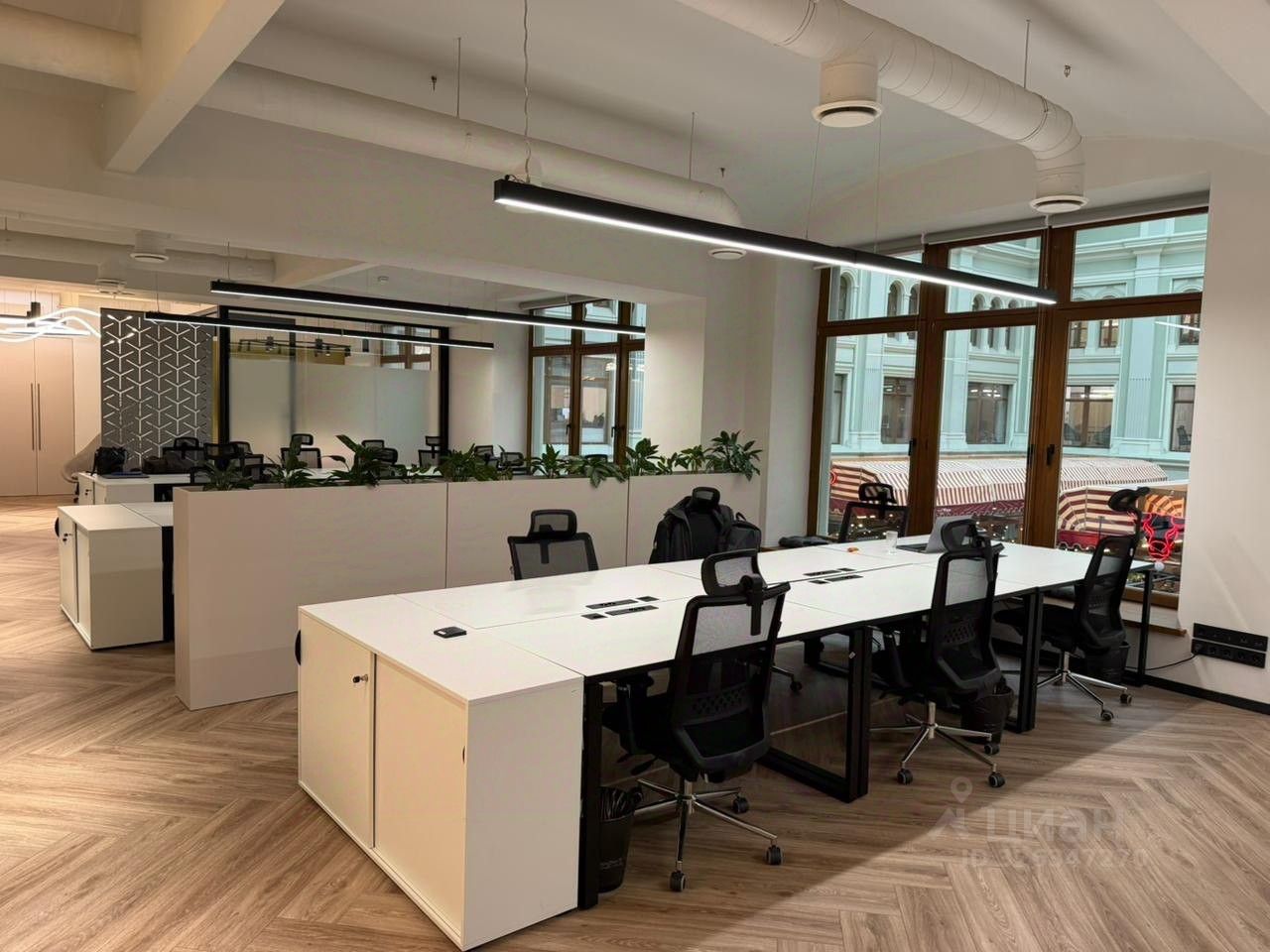 - Гибкие перегородки для адаптации планировки (open space, кабинеты, лаунж-зоны)