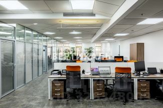 В офисе высокие потолки 2.75 метров, 20 кВт мощности уже доступно, по желанию можно увеличить до 70-и кВт, пропускная система ресепшн, охраняемый подземный паркинг, 4 оператора высокоскоростного интернета, приточная система вентиляции, панорамные окна, ресторан в деловом центре предоставляет скидки сотрудникам, там же можно арендовать банкетный зал.