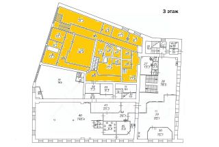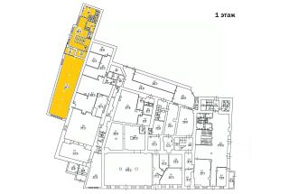Помещение занимает три этажа, состоит: 3 обеденных зала, служебные помещения, 6 кухонь, моичная, душевая, подсобные и складские помещения, 8 с/у.