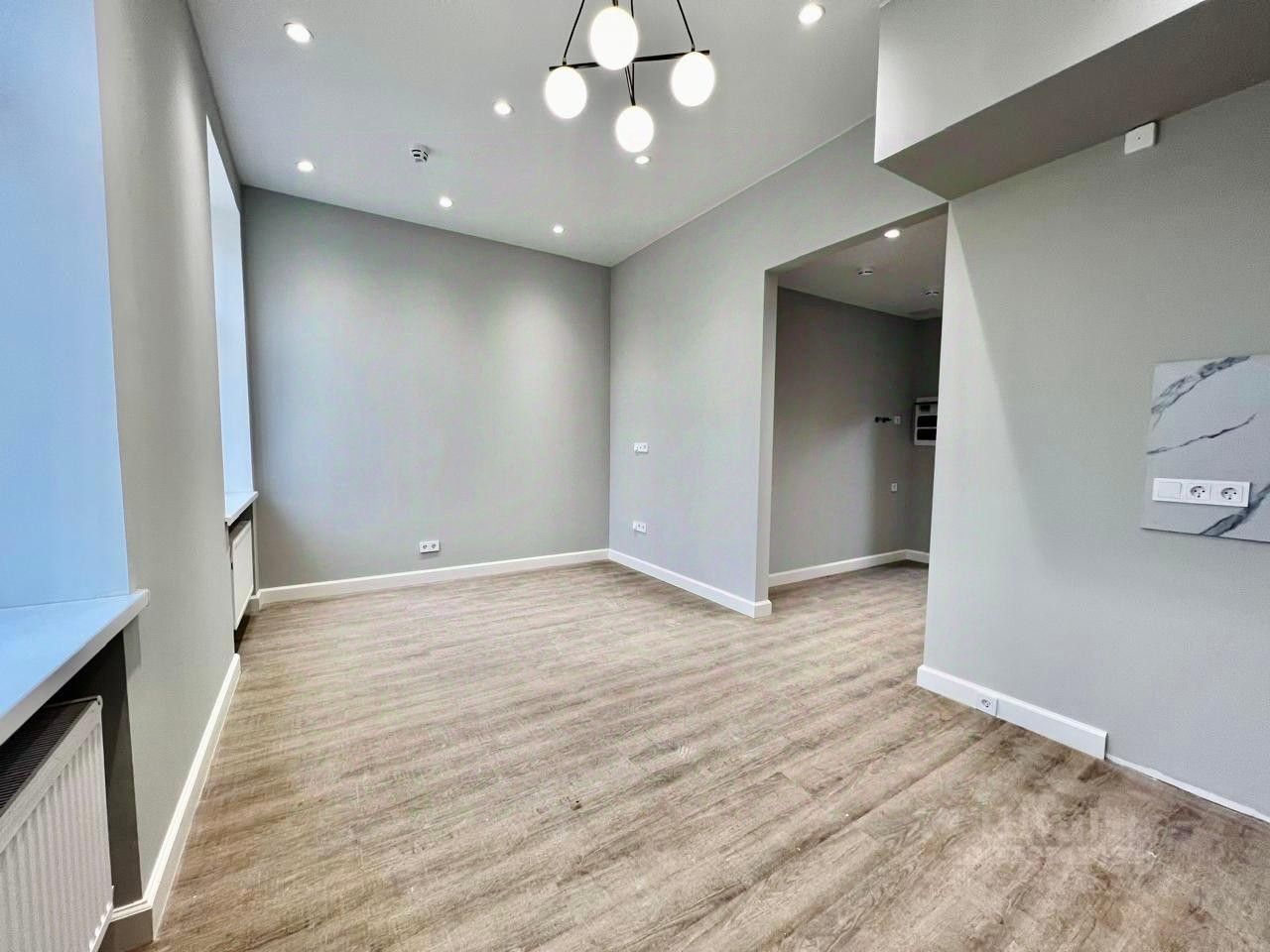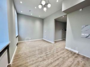 Офис площадью 24 кв. м с дизайнерским ремонтом, с выделенной зоной для кухни и собственным санузлом.