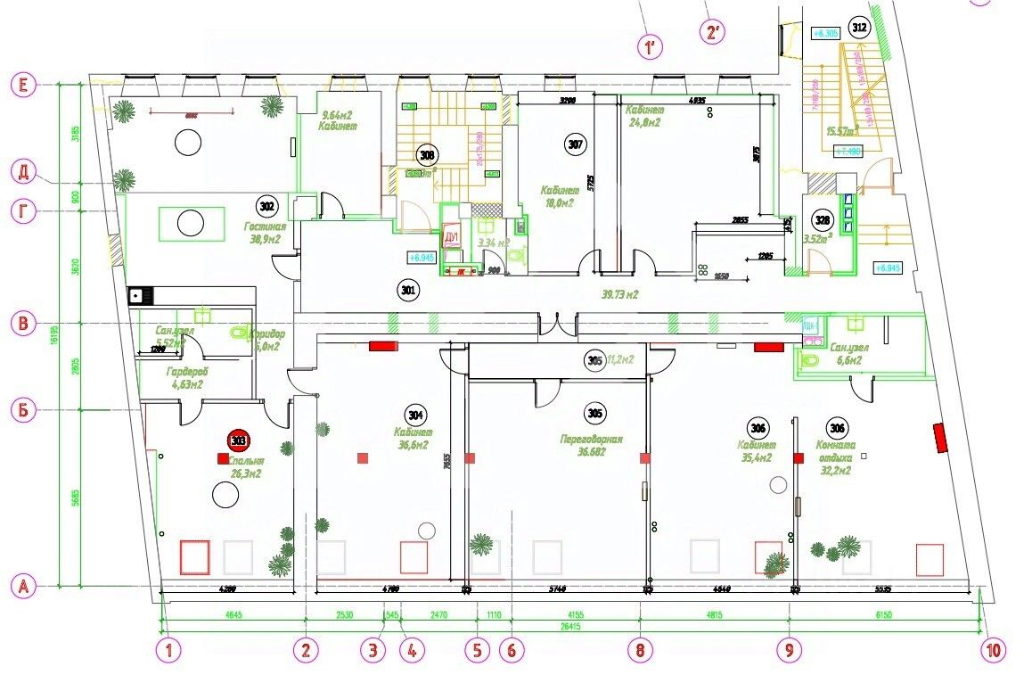 - Планировка кабинетная