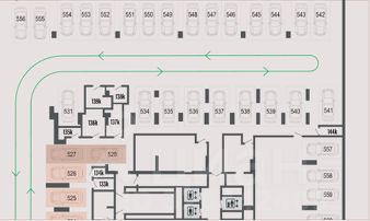Машино-место 553. Оно расположено в 4 корпусе, комфортно от входа к лифтам в подъезд и удобно к выезду из паркинга.