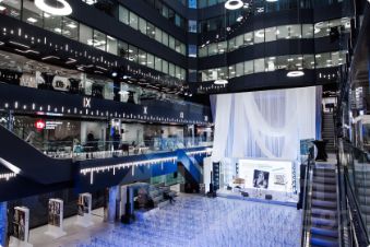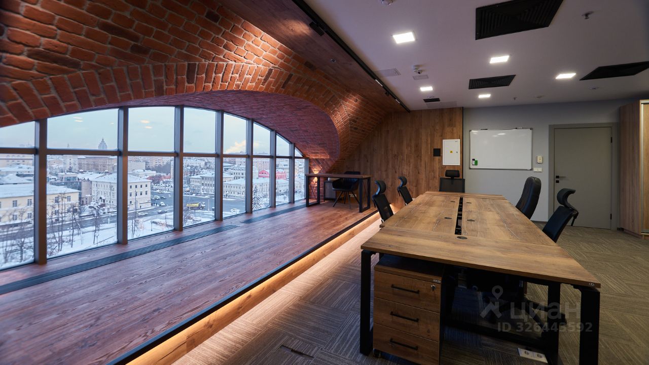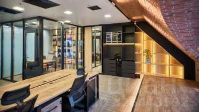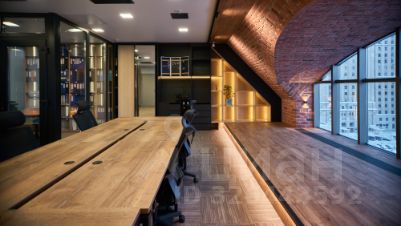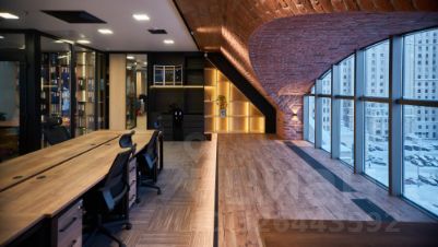 Интерьер выполнен в стиле лофт. Офис расположен на высоком видовом этаже, из окон открывается панорамный вид на Москву.