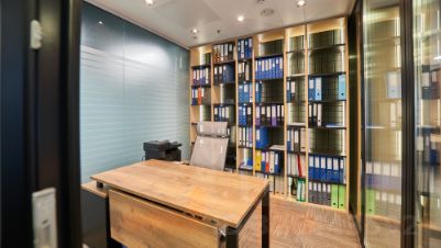 В офисе реализована смешанная планировка: комфортная зона open space, отдельный кабинет руководителя, просторная переговорная и небольшой кабинет в формате glass box с повышенной шумоизоляцией.