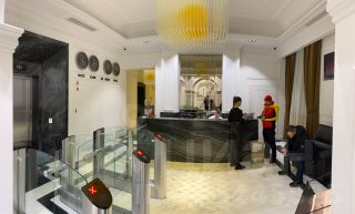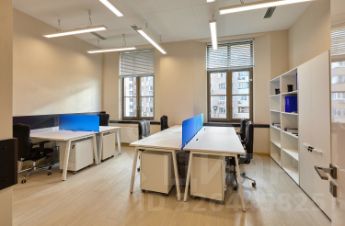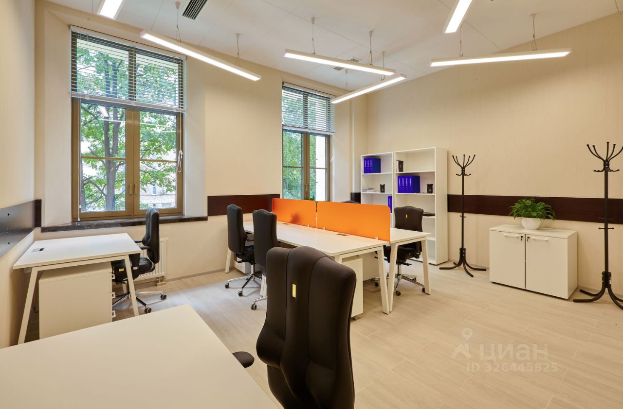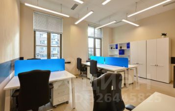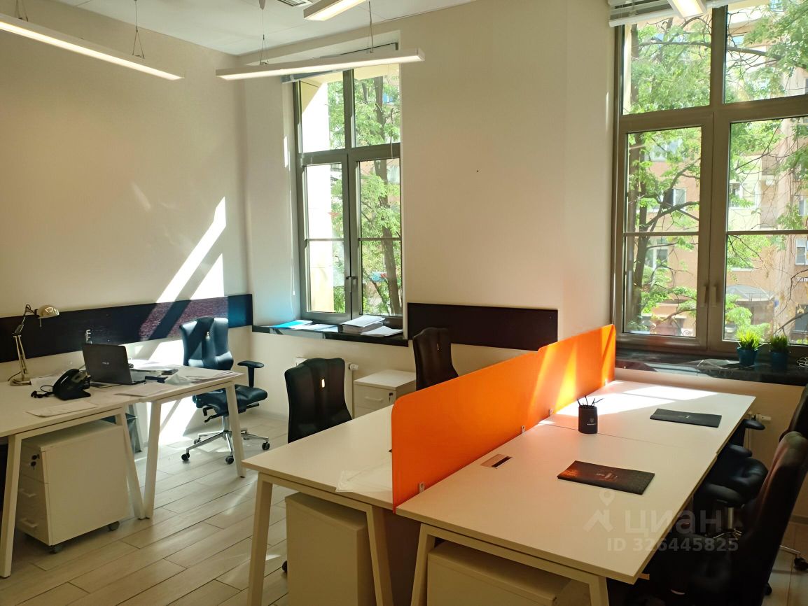 Меблированный офис с двумя панорамными окнами сдаётся в аренду 25 квадратных метров на 5-6 рабочих мест на 5-м этаже. В аренду включено: мебель, ежедневная уборка офиса, электроэнергия, все коммунальные и эксплуатационные платежи, круглосуточный доступ в офис, юридический адрес, кухня (кофе, чай, вода). В помещениях высокие потолки - 3.5 метра. На первом этаже есть возможность аренды переговорных комнат. На лобби работает администратор - встреча посетителей и прием корреспонденции, фитнес студия на цокольном этаже.