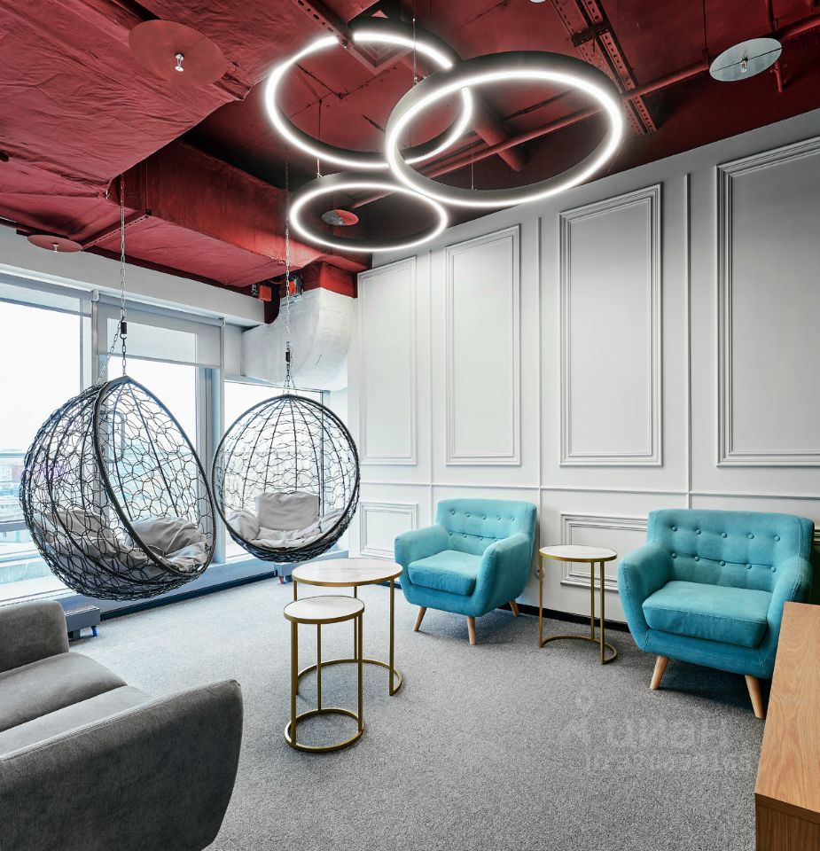 Офис полностью меблирован и готов к въезду, выполнен современный дизайн и имеет смешанную планировку сочетающую кабинеты руководства, пространства для отделов, переговорные комнаты, серверную, миникухню. К услугам арендатора телепереговорные, пространства для собраний/лекторий/мероприятий, кафе и уголки для отдыха.