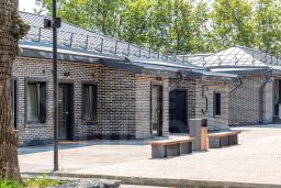 Отделка фасадов выполнена панелями с имитацией клинкерного кирпича. Дополнительно на территории организованы зоны отдыха на свежем воздухе, также дополнительно имеется возможность для организации летних веранд и кафе.