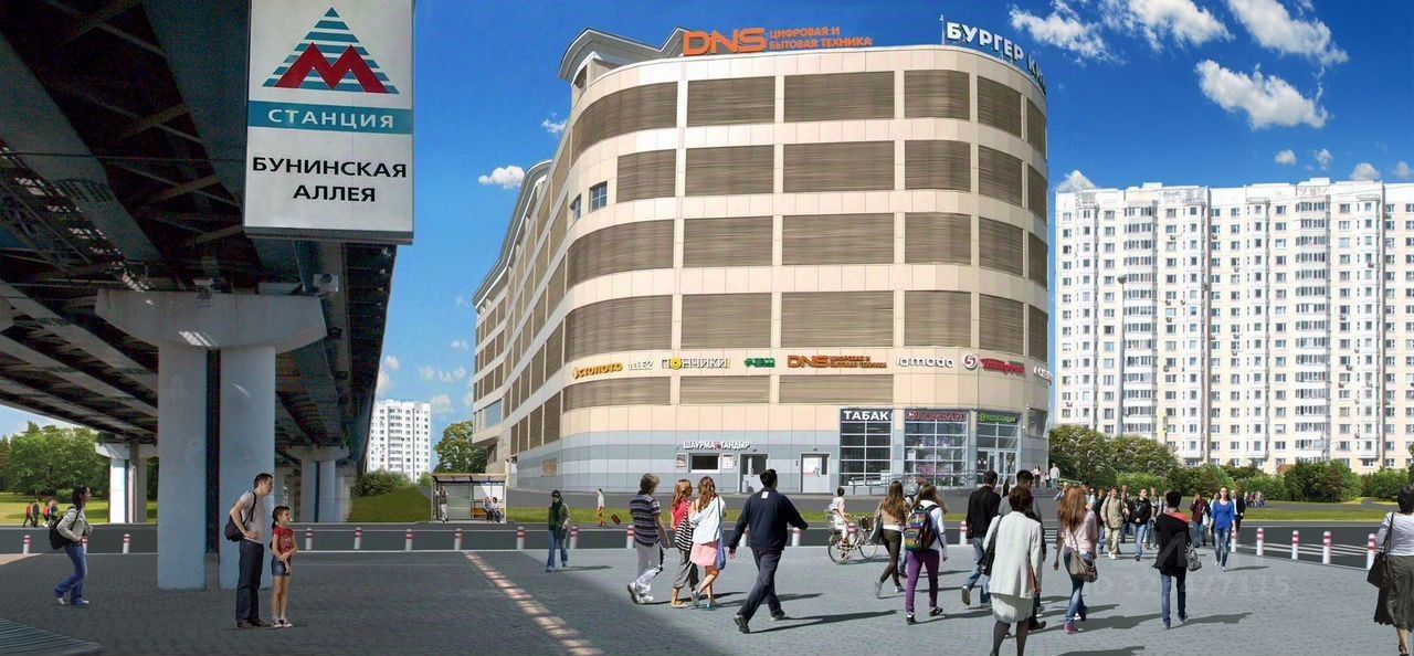 ТЦ расположен в 50 метрах от выхода из метро Бунинская аллея.