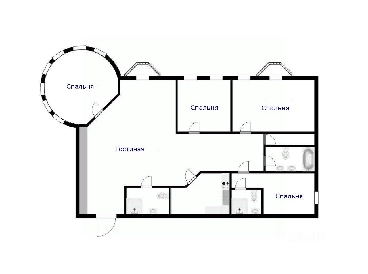 По документам - пятикомнатная квартира с авторским дизайном и необходимой техникой (кондиционеры, стиральная машина, холодильник, пароварка, микроволновка, духовой шкаф, посудомоечная машина, бойлер, джакузи, теплые полы, сигнализация, интернет и т.д.).