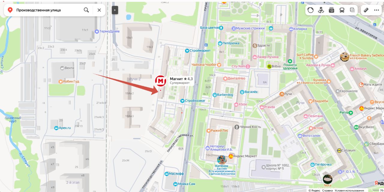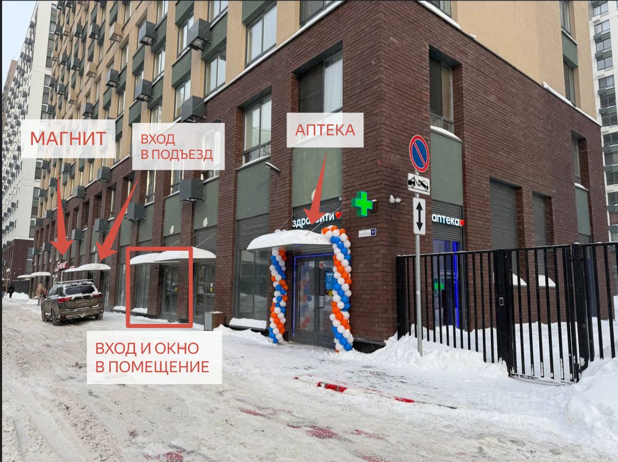Слева от помещения - аптека и калитка во двор, справа вход в подъезд и супермаркет Магнит. Т.е весь трафик дома и покупатели супермаркета и аптеки - ваш.
