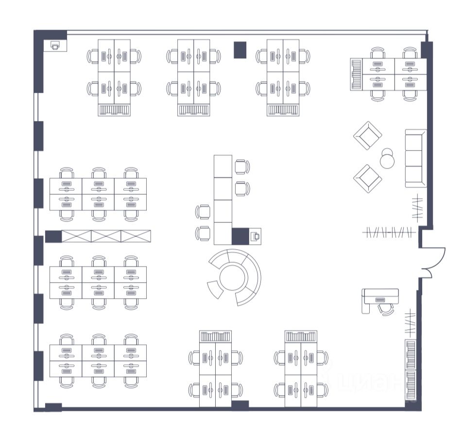 - Открытая планировка, позволяющая гибко организовать рабочее пространство;