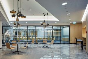 - Развитая инфраструктура на нижнем уровне: кафе, магазины и другие сервисы для арендаторов.