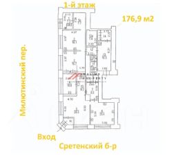 Аренда торгового помещения 176,9 м2 на Милютинском переулке, дом 19/4 строение 2 (5 минут пешком от метро Тургеневская/Сретенский бульвар/Чистые пруды). 1-я линия!