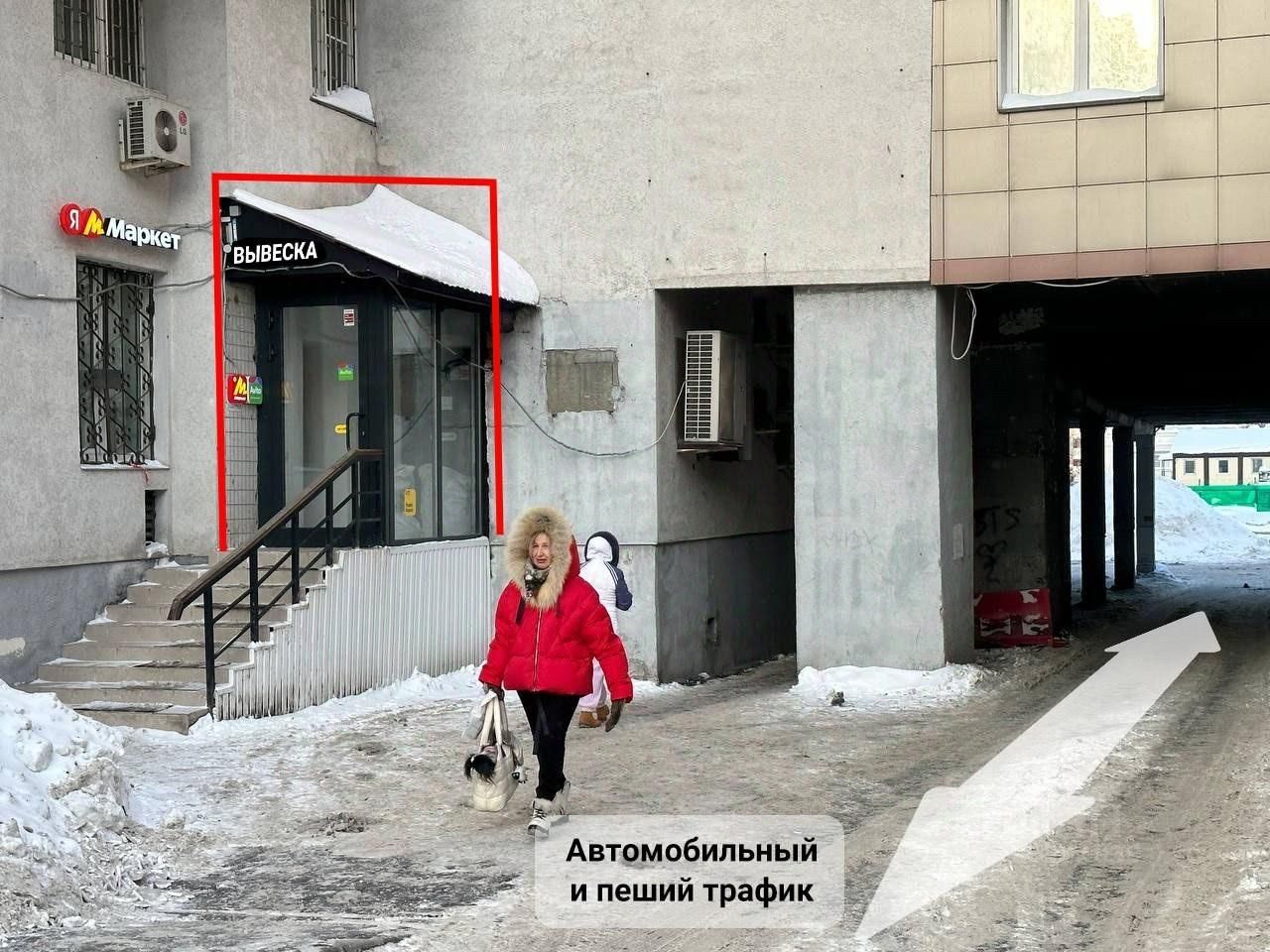 1-й этаж жилого двенадцатиэтажного здания. Отлично просматриваемый отдельный вход на народной тропе к популярной торговой линии популярных магазинов.