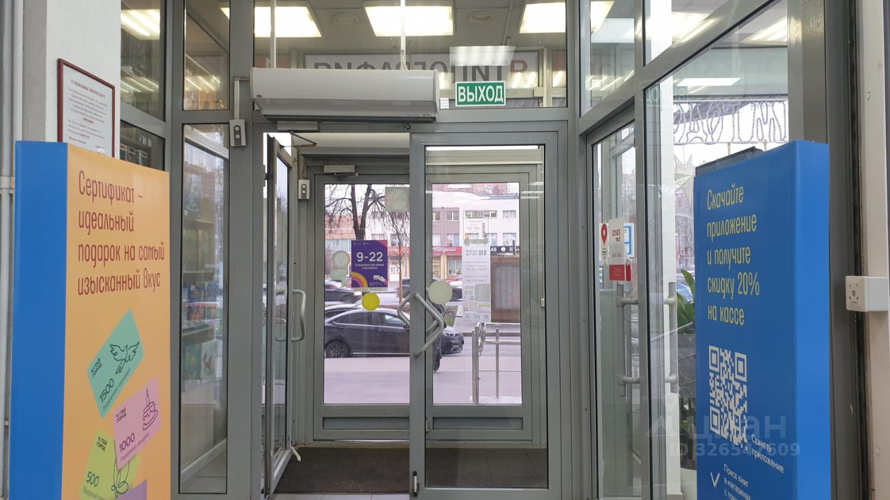 Состояние помещения как на фото. Ранее занимал книжный магазин Читай город. Соседи: Улыбка радуги, типография, магазин Пуховики, Турагентство, Игрушки и др.