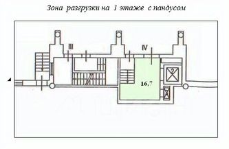 1-й этаж 16,7 м2. Разгрузочная зона, грузовой подъемник (г/п 100 кг), пассажирский лифт.