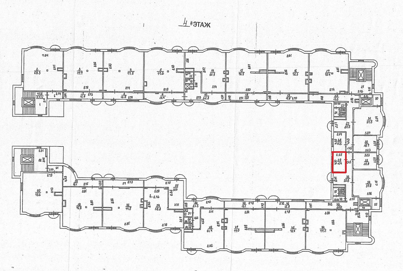 Площадь 11,4 кв.м., 4 этаж 9-ти этажного здания (ком. 29, каб. 412).