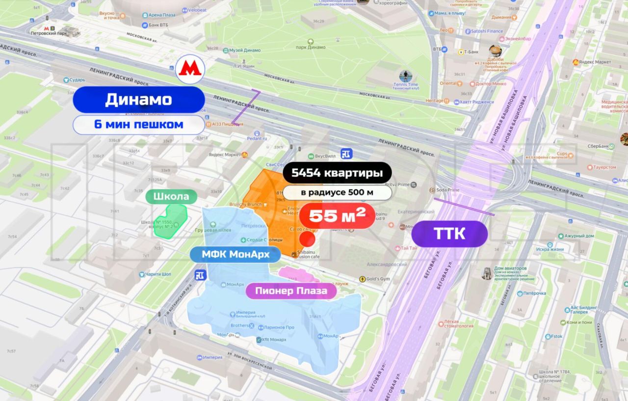 • 6 минут пешком до м. Динамо