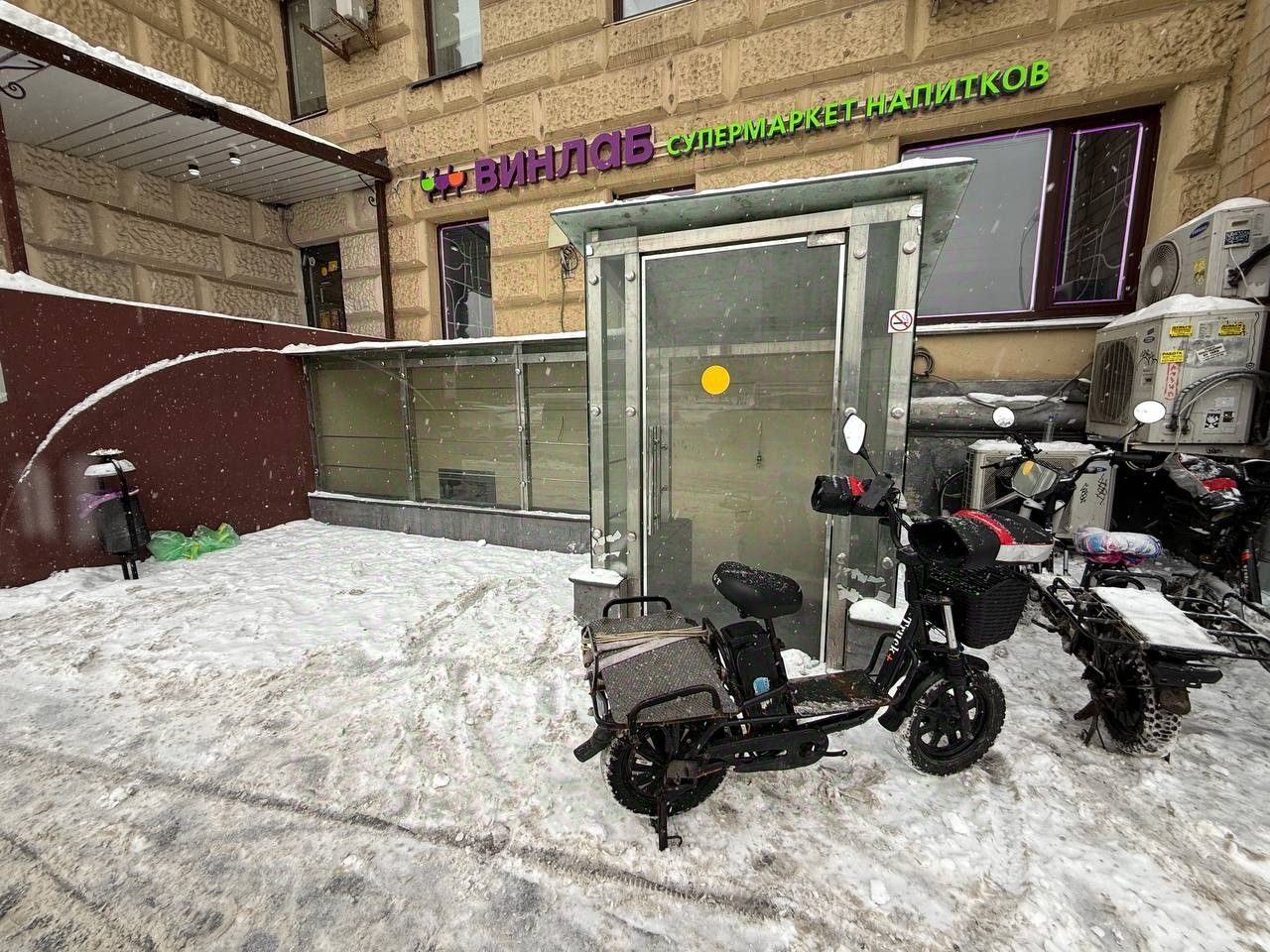 - Яркая стеклянная витрина непосредственно на пешеходном трафике