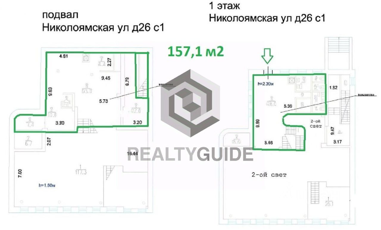 Двухуровневое помещение расположенное на первом и подвальном этажах. Подойдет под организацию студии или лофт-офиса.