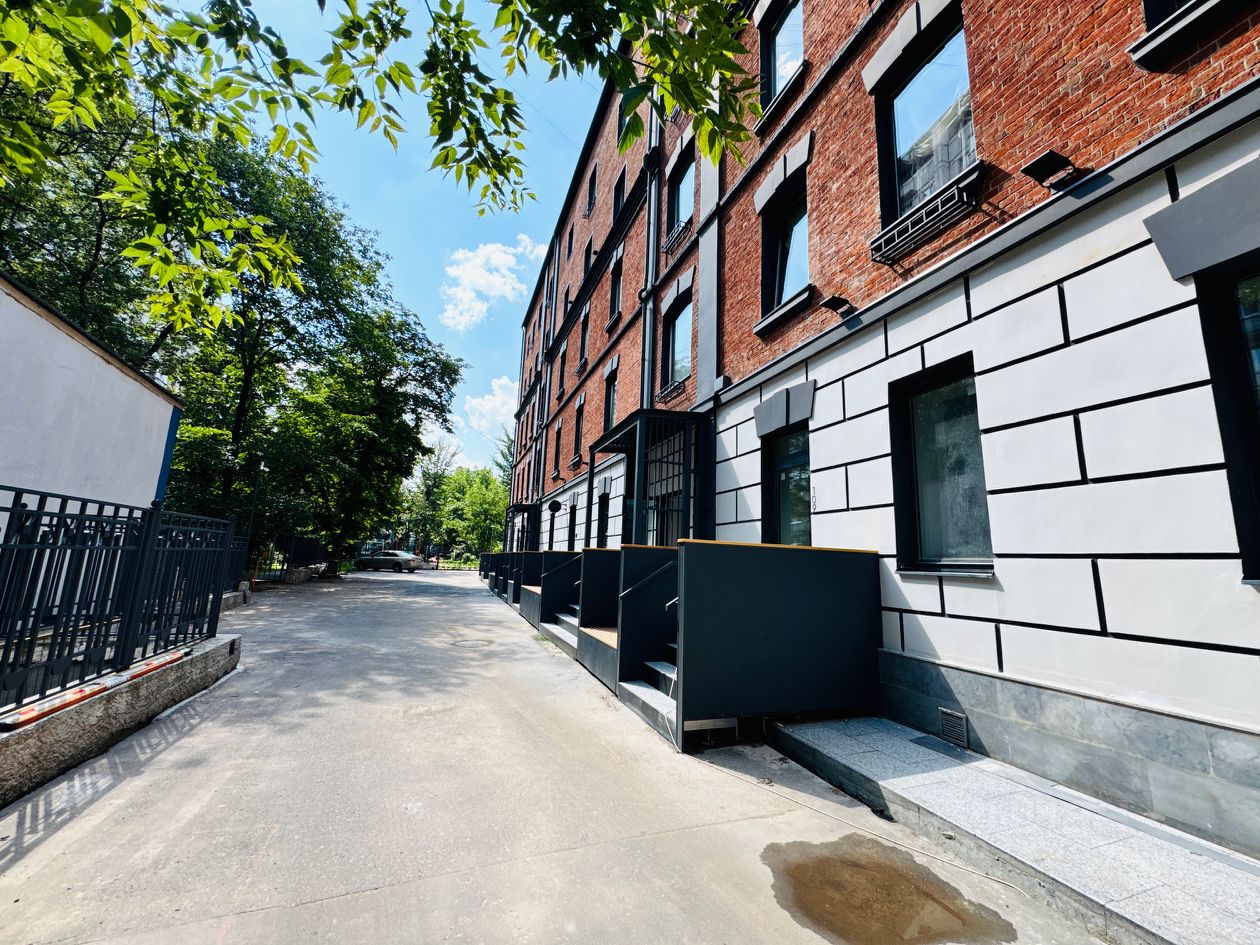 Лот находится на 1-м этаже административного здания. Имеет свой отдельный вход и собственную террасу.