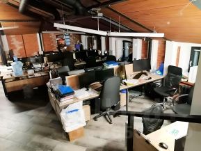 На этажах открытая планировка (ореn sрасе), имеются кабинеты , переговорные , зоны ресепшн , кухня и санузлы на каждом этаже . Есть отдельные выходы .