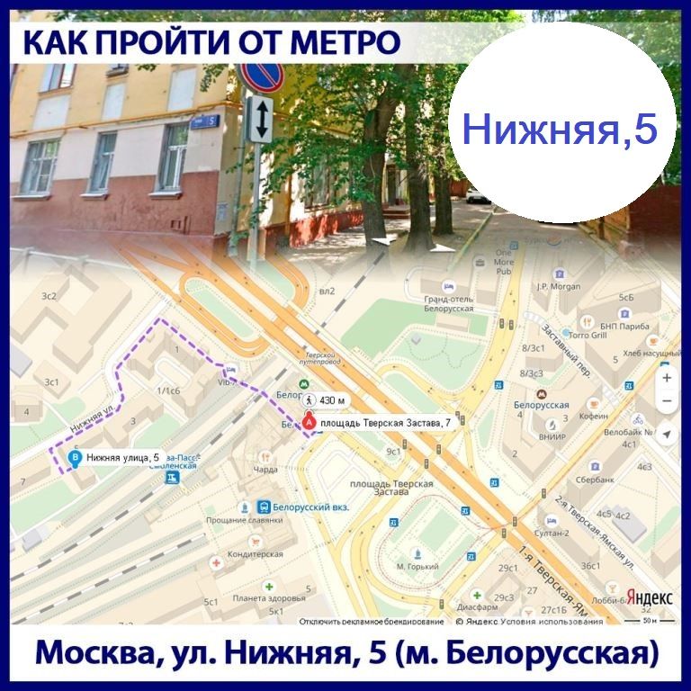 Метро Белорусская — 5 минут пешком.
