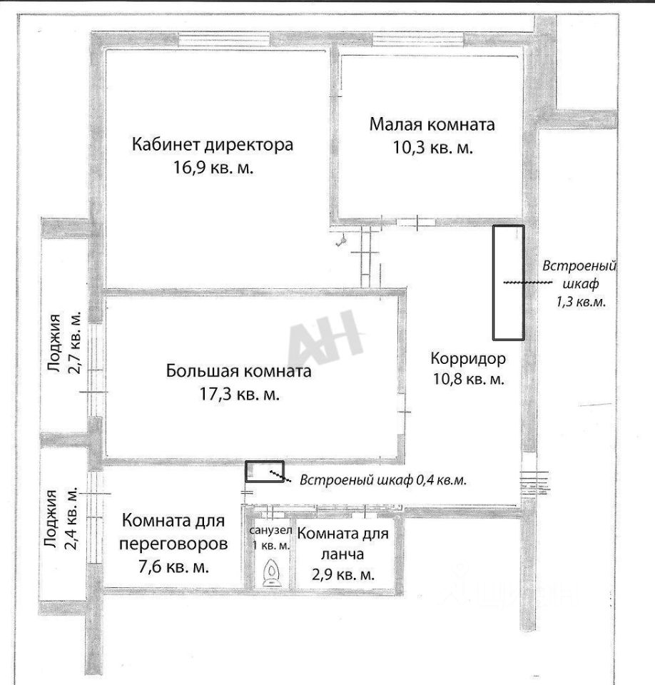 Лот 1029742 Предложение от Собственника! Предлагается к рассмотрению офисное помещение общей площадью 73,6 кв. м. В состав входят четыре отдельных кабинета, санузел, помещение для приготовления пищи и две застекленные лоджии. Помещение оснащено комплексом безопасности: в каждой кабинете установлены пожарная и тревожная сигнализация, соответствующая ГОСТ, необходимое количество огнетушителей, а также тревожная кнопка с подключением к системе "Гольфстрим".