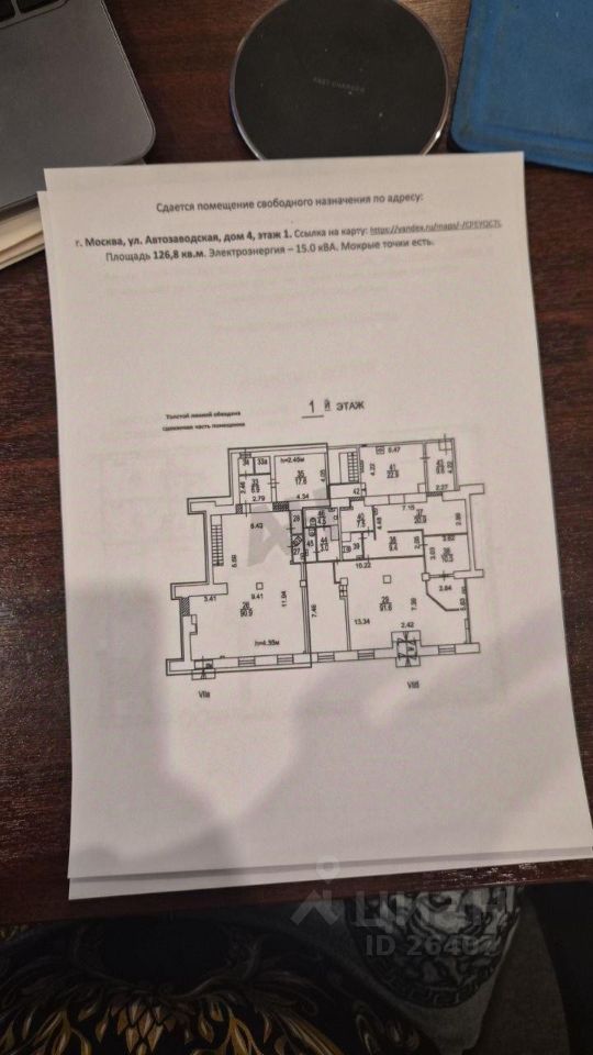 Общая площадь 126.8 кв.м. Сан/узел в помещении. Наличие мокрых точек. Электрическая мощность, 15 кВт.