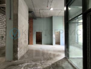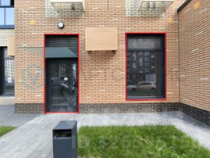 Торговое помещение в новом готовом доме. Рядом оживлённая улица и пешеходные тротуары.