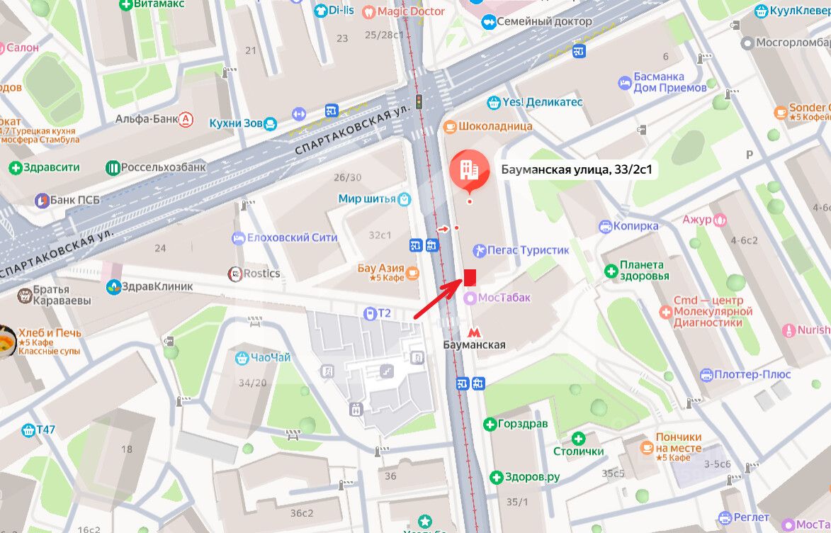 -в 90 м от станции метро "Бауманская";