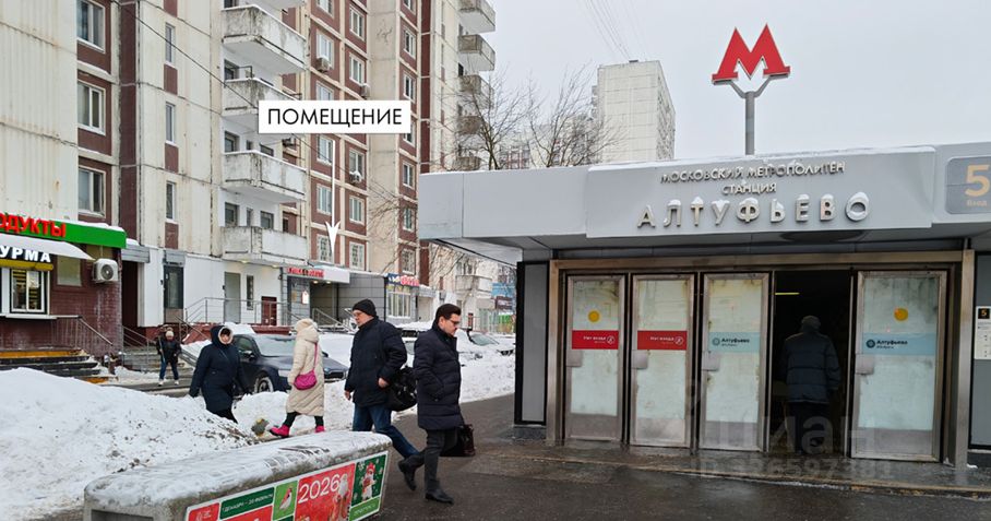 Помещение расположено на первом этаже многоэтажного жилого дома , в 30 метрах от ст. м. "Алтуфьево" в районе Бибирево.