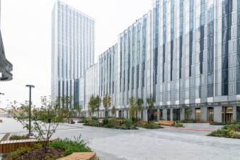 Виды: панорамное остекление наполняет помещение естественным светом. Лоты предлагают виды на Москву-реку или на благоустроенную внутреннюю территорию комплекса;