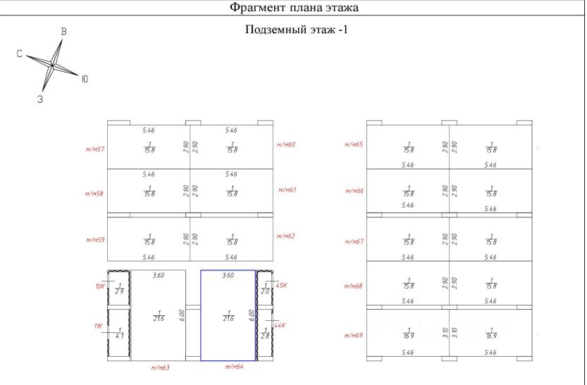 Машино-место 64 на -1 этаже площадью 21,6 м2 по адресу ул. Фестивальная д.15 корп.2, пять минут от метро Речной вокзал.