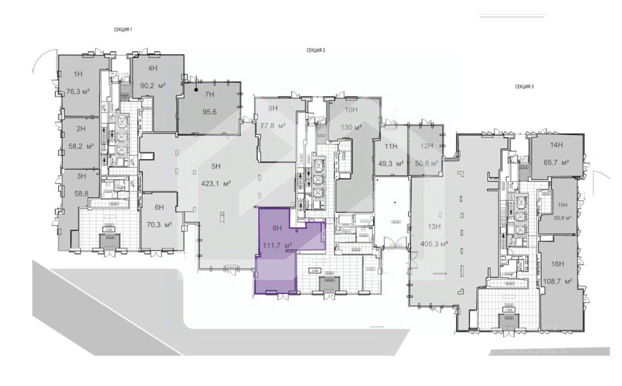 976898-f . Предлагаем помещение свободного назначения формата Street Retail, площадью 111,7 кв. м, расположенное на первом этаже жилого дома в ЖК "Метрополия". Секция 2.